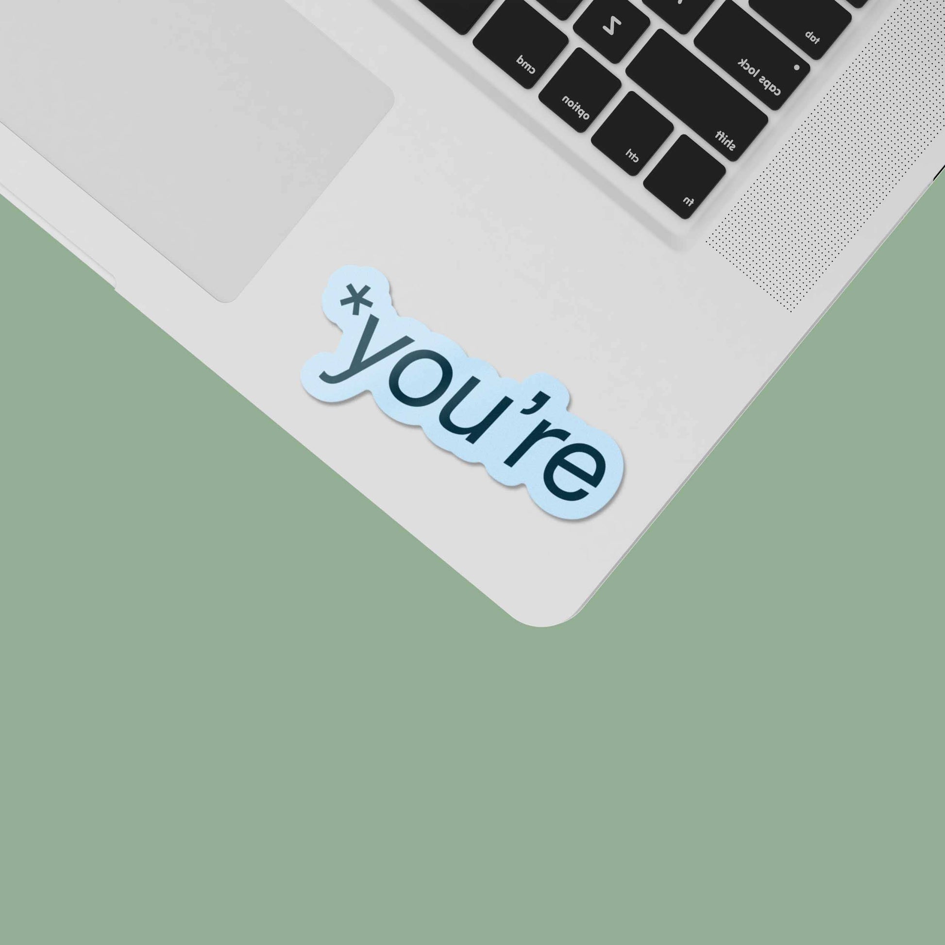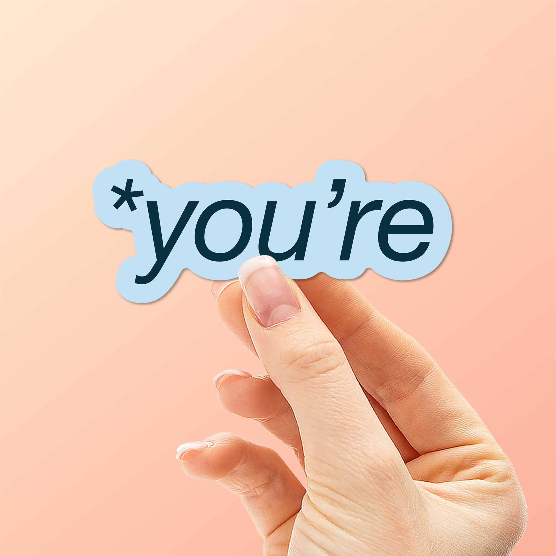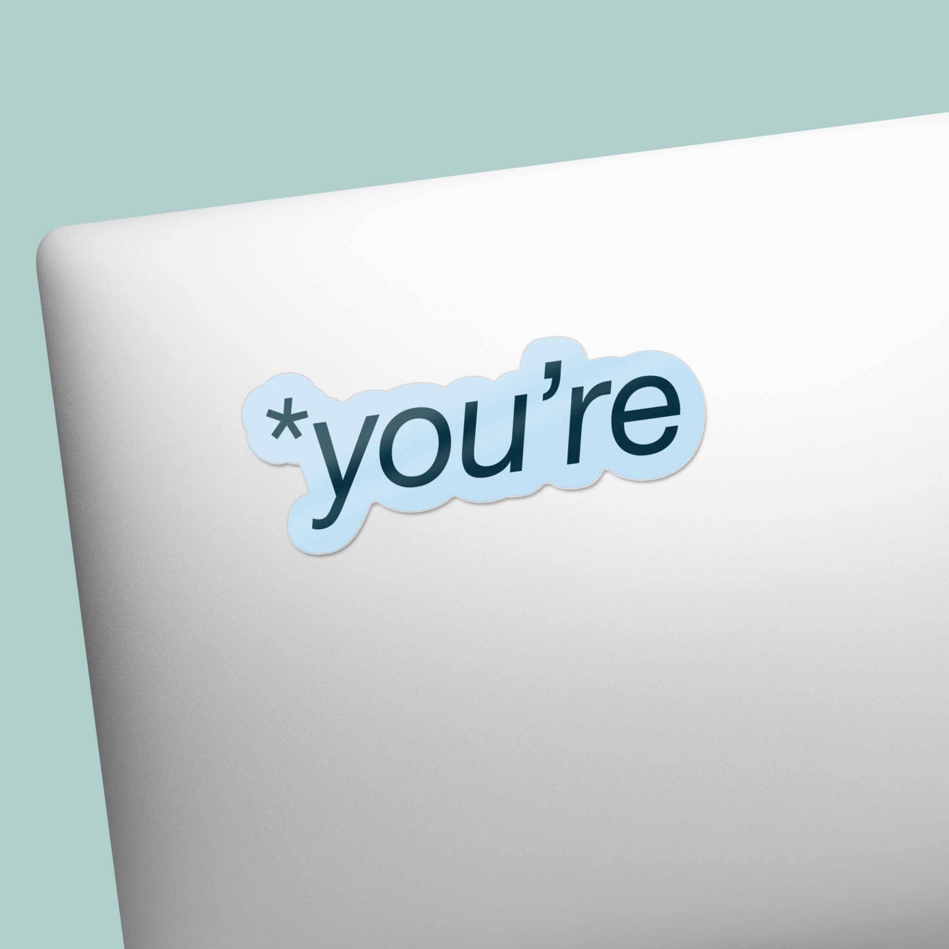 This funny sticker is for all of the grammar police that just can't help themselves. We've all been there: you think, "surely it can't be that difficult to spell correctly." But here you are, coming in clutch with your passive-aggressive spelling correction. Now you can express your mild disappointment to the world with a simple blue *you're sticker. It's a great gift for nerdy friends, family, teachers, or educators with a knack for correct spelling.