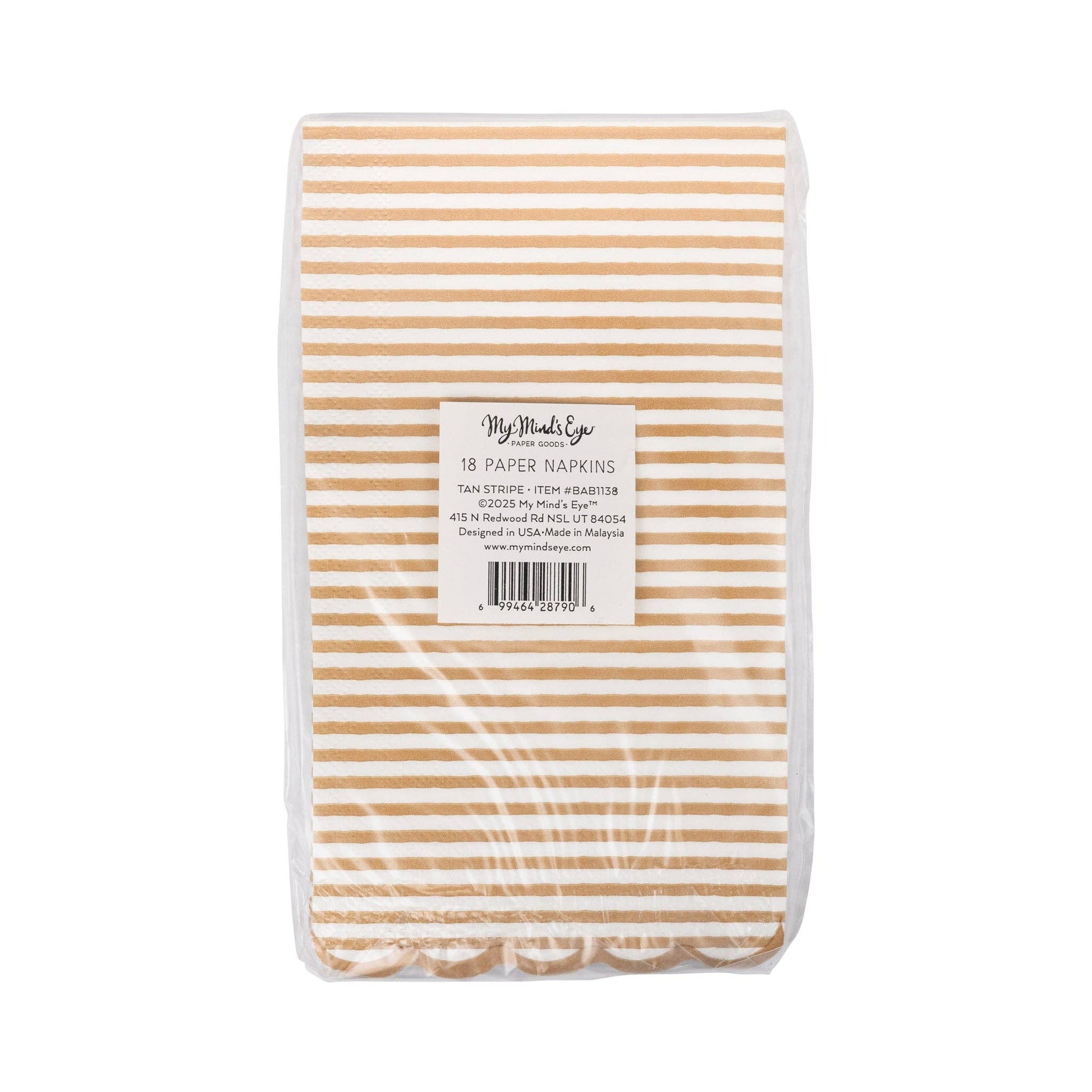 Elevate your baby shower or any celebration with this tan striped dinner napkin. Its neutral tones blend effortlessly with various party themes, adding a subtle touch of elegance and warmth. • includes 24 paper napkins • 4.25" x 7.75"