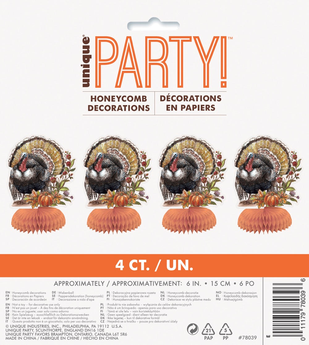 Plaid Turkey 6in Mini Honeycomb Decorations 4ct