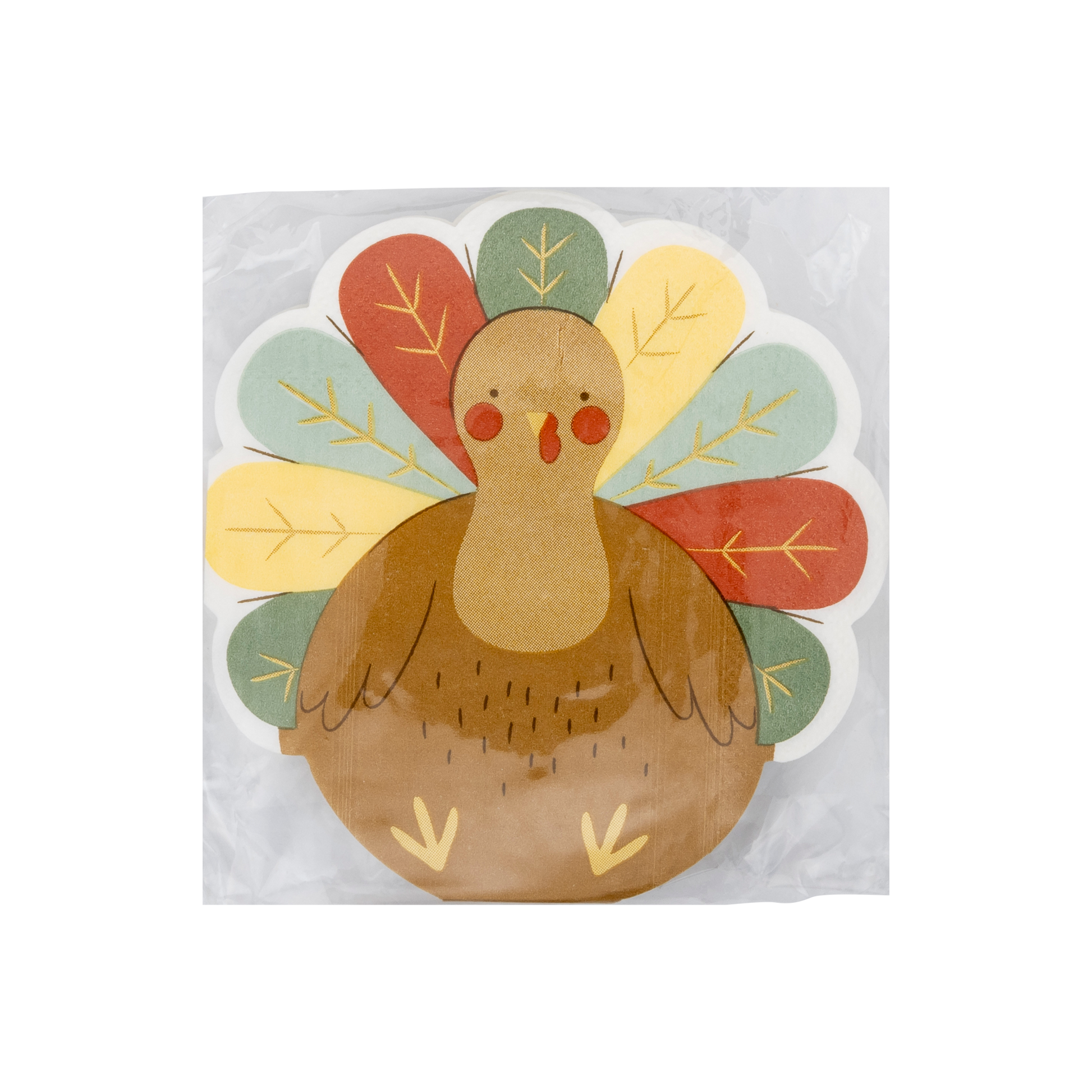 Add a touch of whimsy to your Thanksgiving dinner with our Shaped Turkey Cocktail Napkins! These festive napkins feature a fun turkey design, perfect for adding some holiday cheer to your table. Gobble gobble! • includes 24 paper cocktail napkins • 5 x 5"