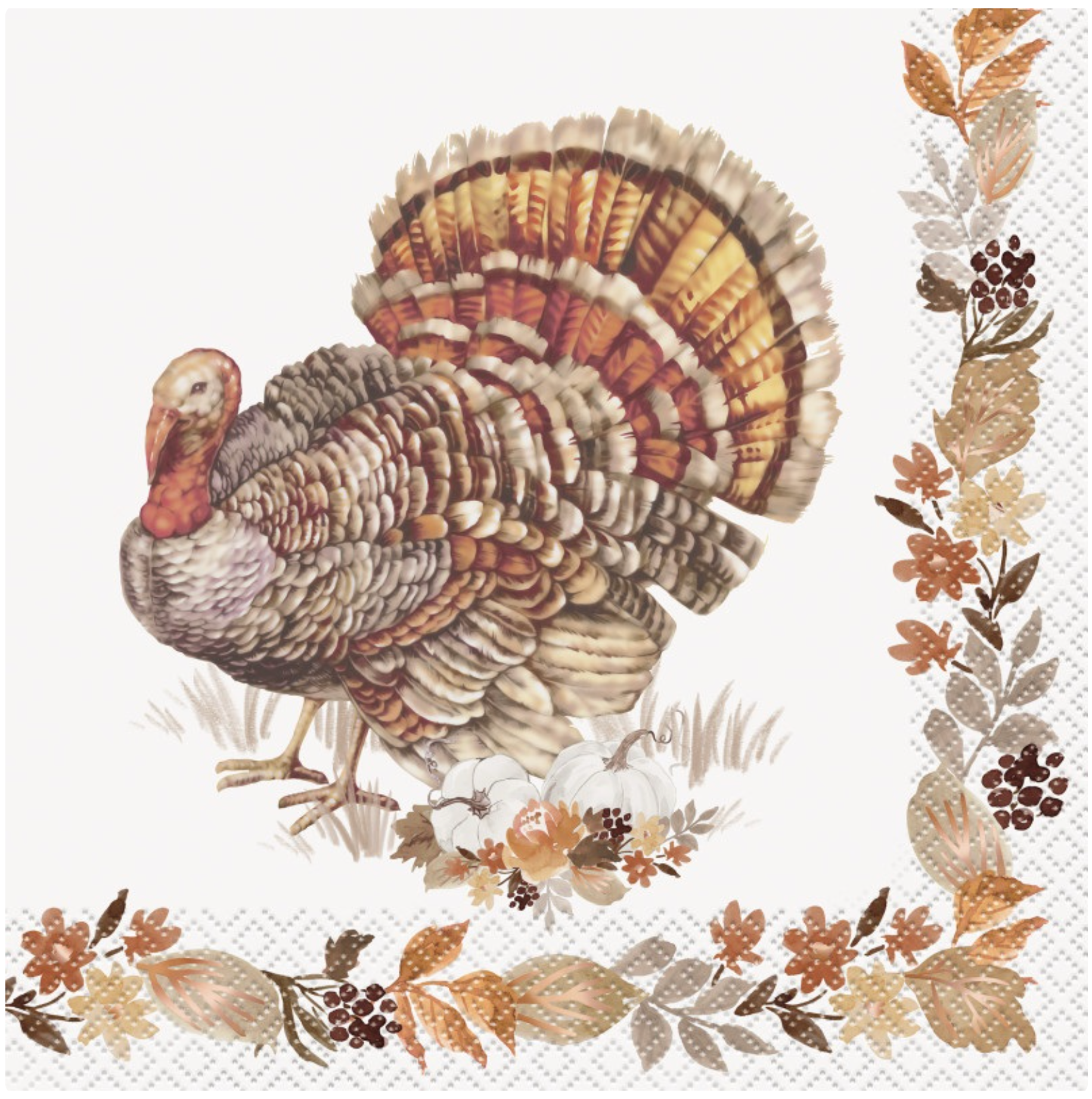 Thankful Harvest Turkey Foil Lunch Napkins 16ct