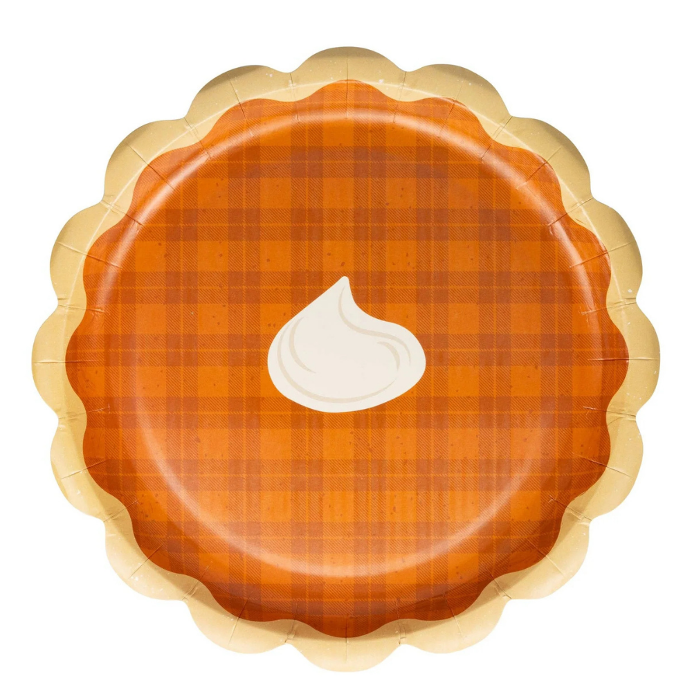 Add a playful touch to your Thanksgiving dinner party with our Pie Dessert Plate. Shaped like a pie, it's perfect for serving all your favorite holiday treats. Make your dessert table stand out and impress your guests with this unique plate. • includes 8 shaped paper plates • 8.5 x 8.5 inches.