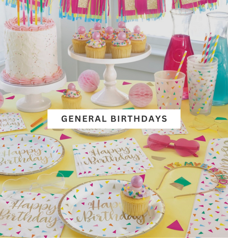 Whether you're planning a milestone bash with age-specific party supplies (1st birthdays and fabulous 50s!) or a classic general birthday party, you'll find tableware, balloons, banners, and décor to match any vibe.