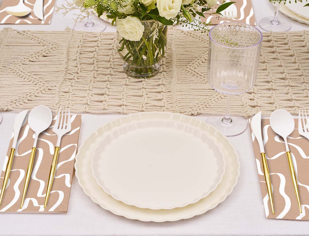 Sustainable meets sophisticated in our beautiful new line of eco-friendly & compostable tableware! These plates are made of natural and biodegradable bamboo fiber making them incredibly sturdy and heavy-duty.