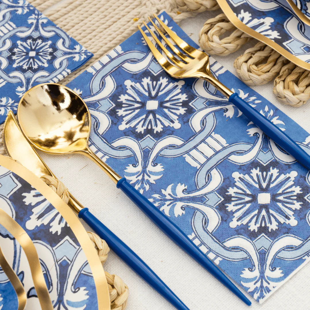 Blue & Gold Bella Assorted Plastic Cutlery/24pc, Service for 8