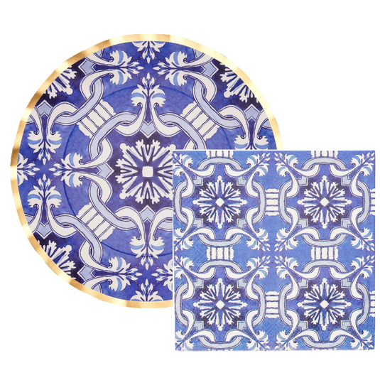 This timeless Moroccan pattern incorporates a metallic gold rim that pairs perfectly...