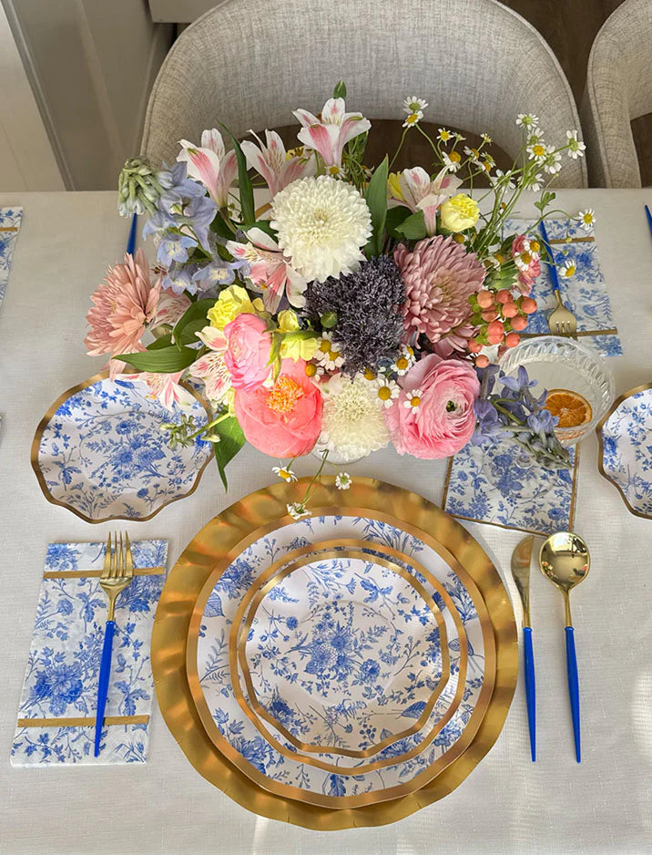 A truly Timeless collection of blue and white floral designs framed with a gold foil trim. These plates look like classic fine china that grandma used to use and will have your guests saying, "OMG, it's paper?!"