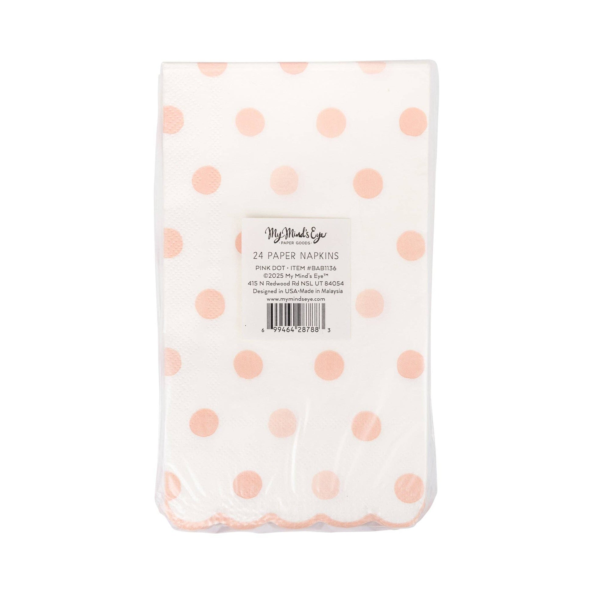 Add a playful touch to your celebration with our Baby Pink Polka Dot Dinner Napkin. Its soft pink hue and cheerful polka dot pattern create a fun, festive atmosphere perfect for baby showers, birthday parties, or any joyful gathering. • includes 24 paper napkins • 4.25" x 7.75"