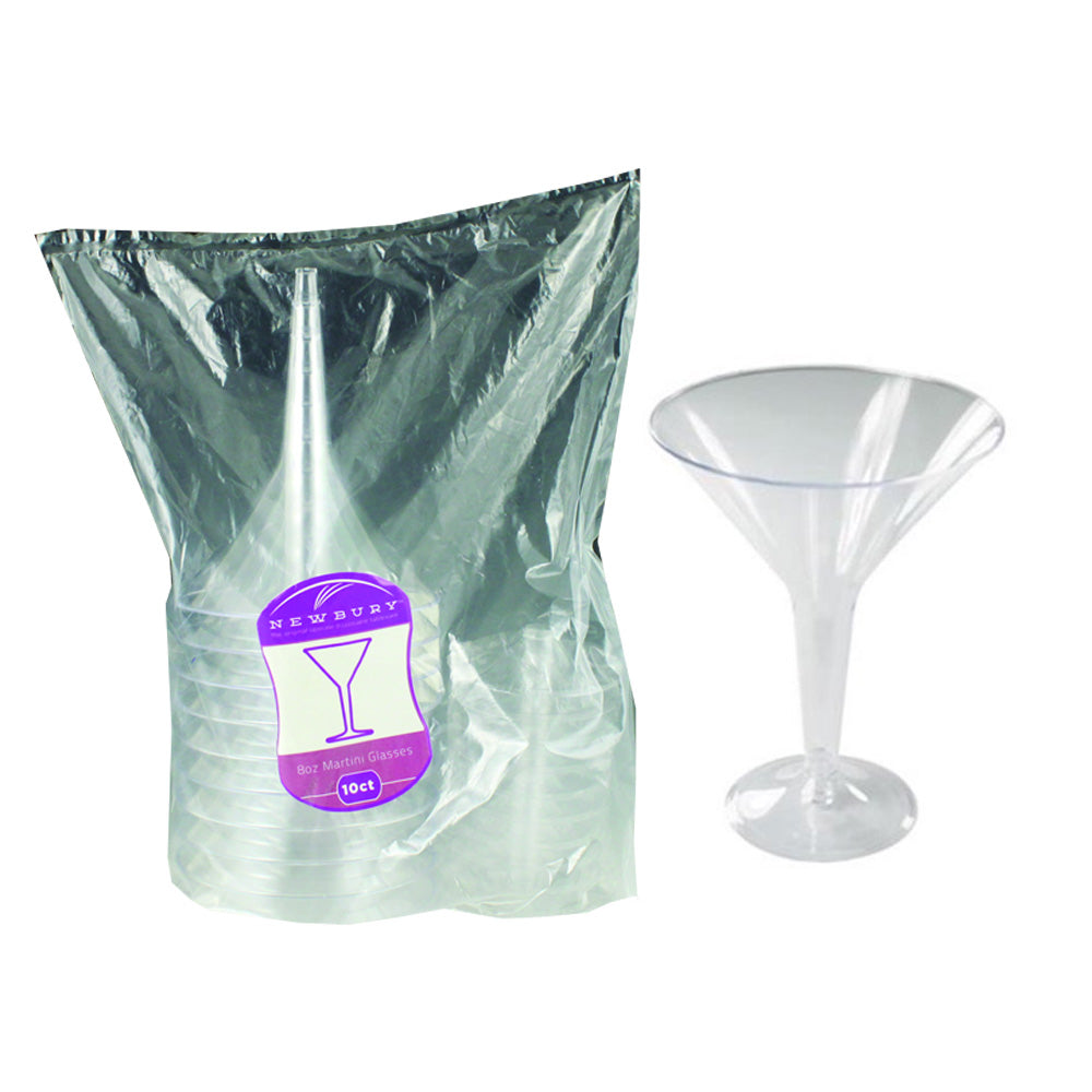 Our Clear Plastic Martini Glasses come in a convenient pack of 10. Made from high-quality plastic, they are the perfect addition to any party or event. Enjoy the sleek and modern look of a traditional martini glass without the worry of breakage. 2 Piece.
