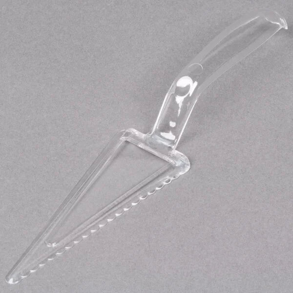 Effortlessly slice and lift your cakes with our Clear Wrapped Plastic Cake Cutter/Lifter. Made with durable plastic, its transparent design allows for precise cuts while the handle provides a comfortable grip. Say goodbye to messy cake slices and hello to perfectly lifted pieces every time.