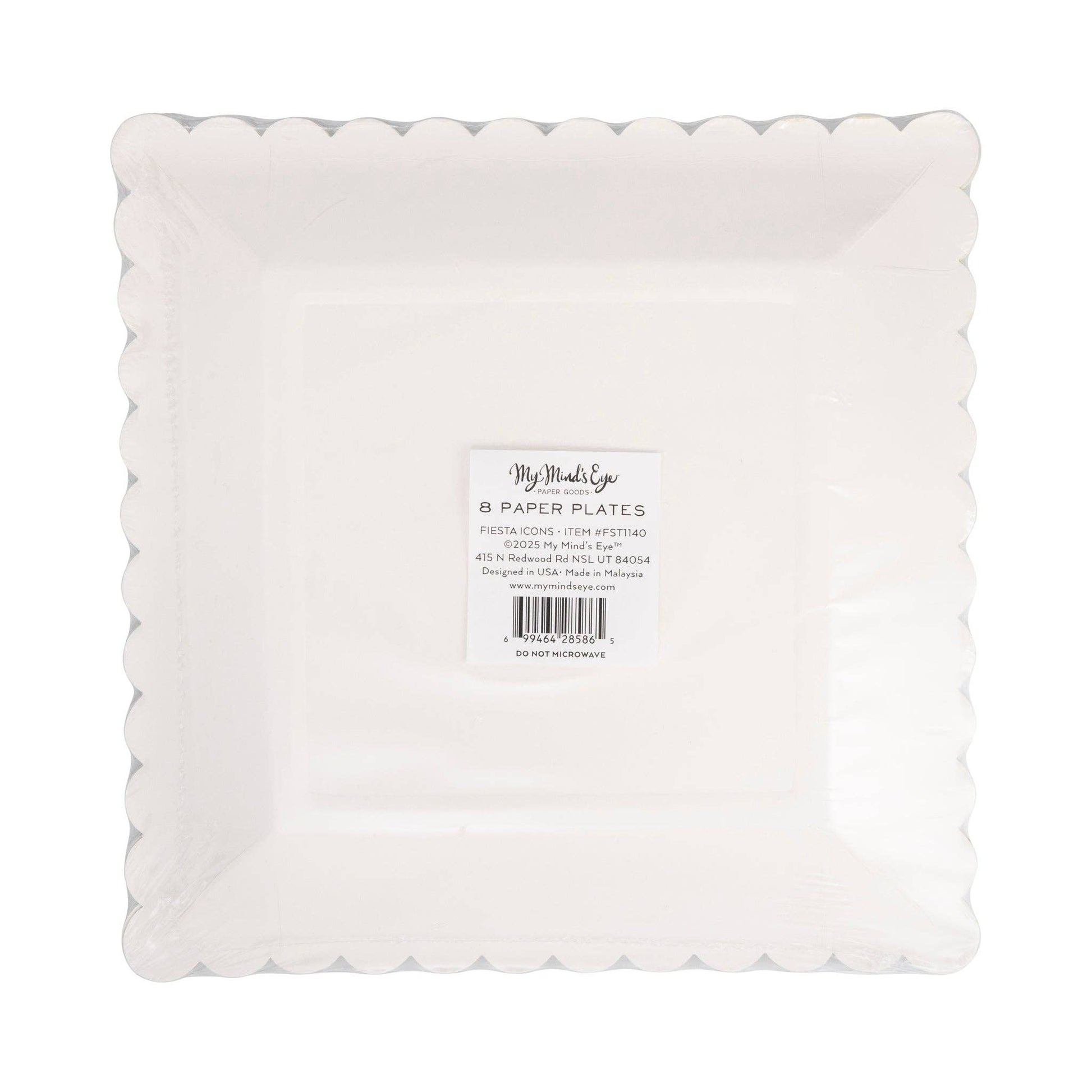 Add a splash of color to your party with our Fiesta Icons plate. Made of durable paper, this 8" plate features fun fiesta icons that will bring a smile to everyone's face. So go ahead, fiesta like there's no mañana with these playful paper plates! • includes 8 scalloped paper plates • 8 x 8 inches.