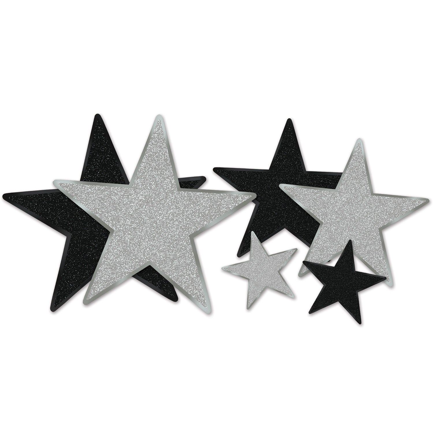 Glittered Foil Star Cutouts Black & Silver 6ct
