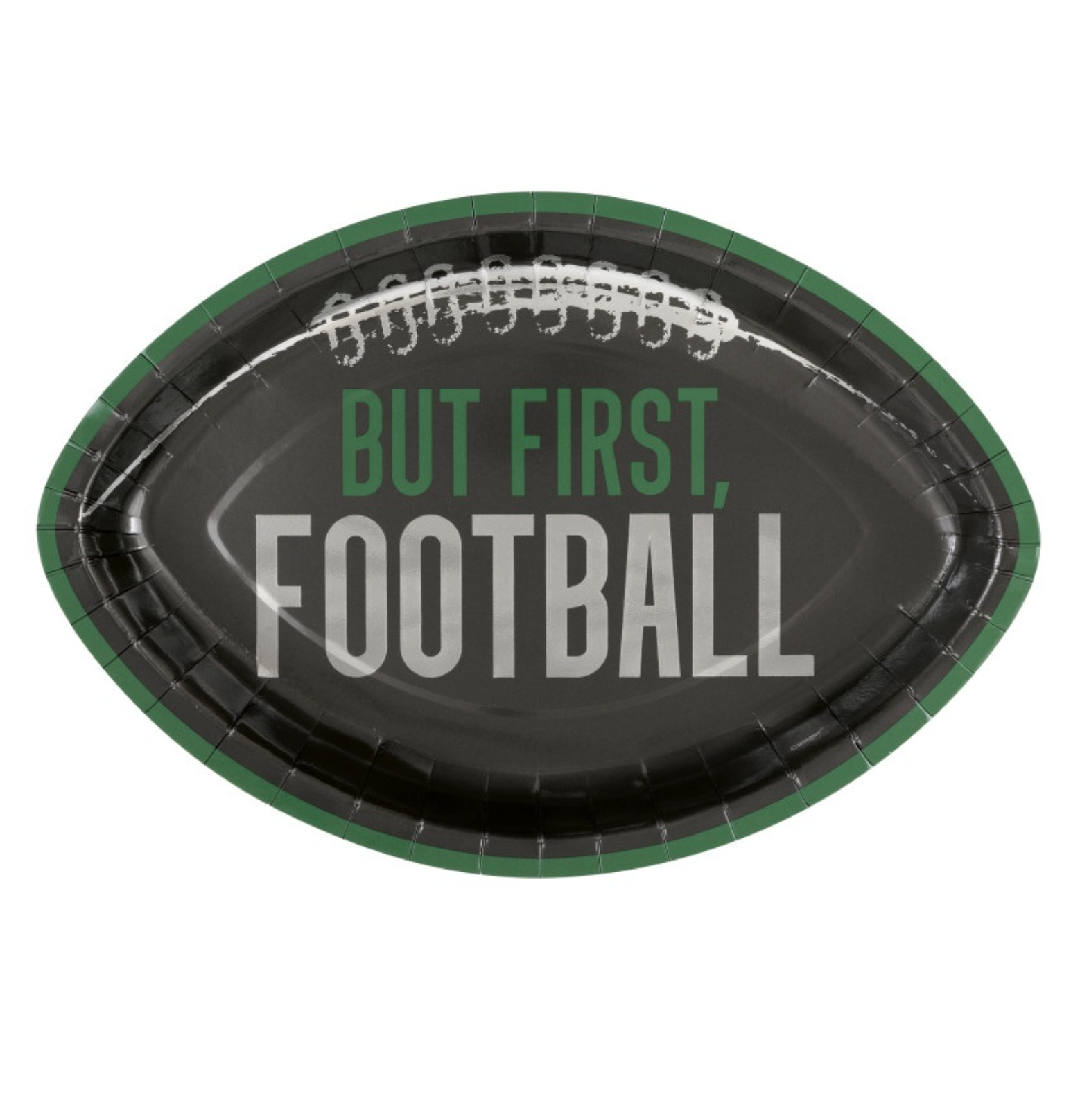 Kickoff Football But First Football Shaped 12in Plates 8ct - Foil Stamping