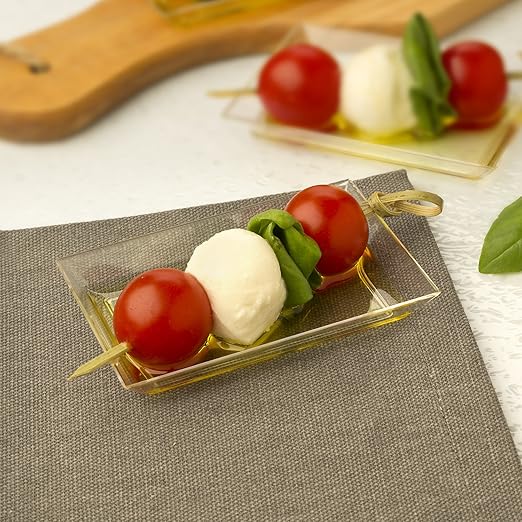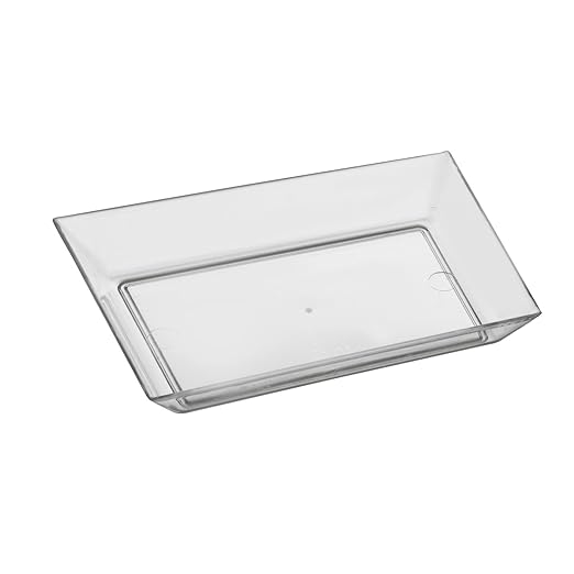 Elevate your next event with Party Essentials' Mini Rectangular Dishes. These clear plastic dishes are perfect for serving small bites, making them an essential for any gathering. With 60 ct. included, you're sure to have enough for all your guests. Impress them with style and convenience.