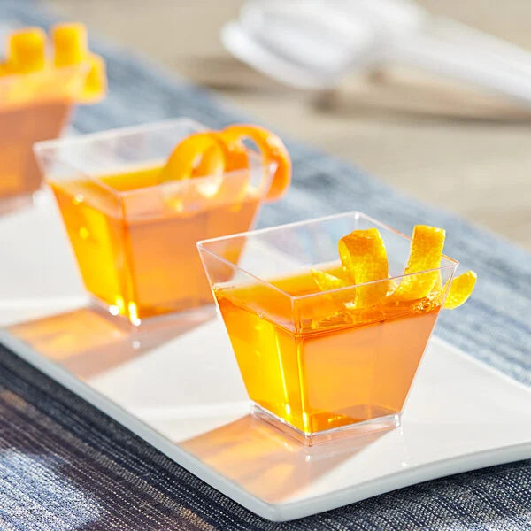 Introducing Mini Square Cups - the perfect party accessory for adding style to any occasion. With 40 cups in each package, these 2-ounce mini cups measure 1.97" x 1.97" x 1.73" and can be used to create professional-looking desserts, appetizers, cocktails, and more. Elevate your party with the chic and versatile Mini Square Cups.