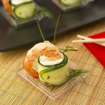 Elevate your party with Mini Square Dishes. These miniature square dishes measure 2.76" x 2.76" x 0.59" and come in a pack of 12. Create professional-looking desserts, appetizers, seafood cocktails, chip & dip, and more with these stylish dishes. Perfect for any occasion.