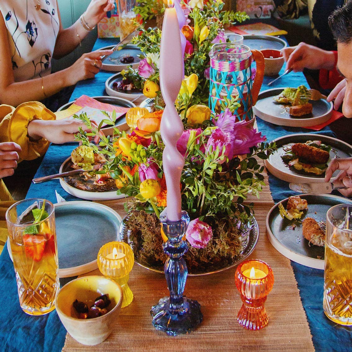 Navy Blue Glass Candlestick Holder by Talking Tables. In a gorgeous shade of deep blue, this candlestick holder adds a touch of sophistication to any room and makes a stylish addition to your range of home décor and table decorations. A lovely line for you winter collection but equally as striking in the summer, inspire your customers to use for a romantic candle lit meal, dinner party with friends or gift. Our glass candle holders are available in multiple different colors and sizes and can be paired with our matching colored dinner candles.