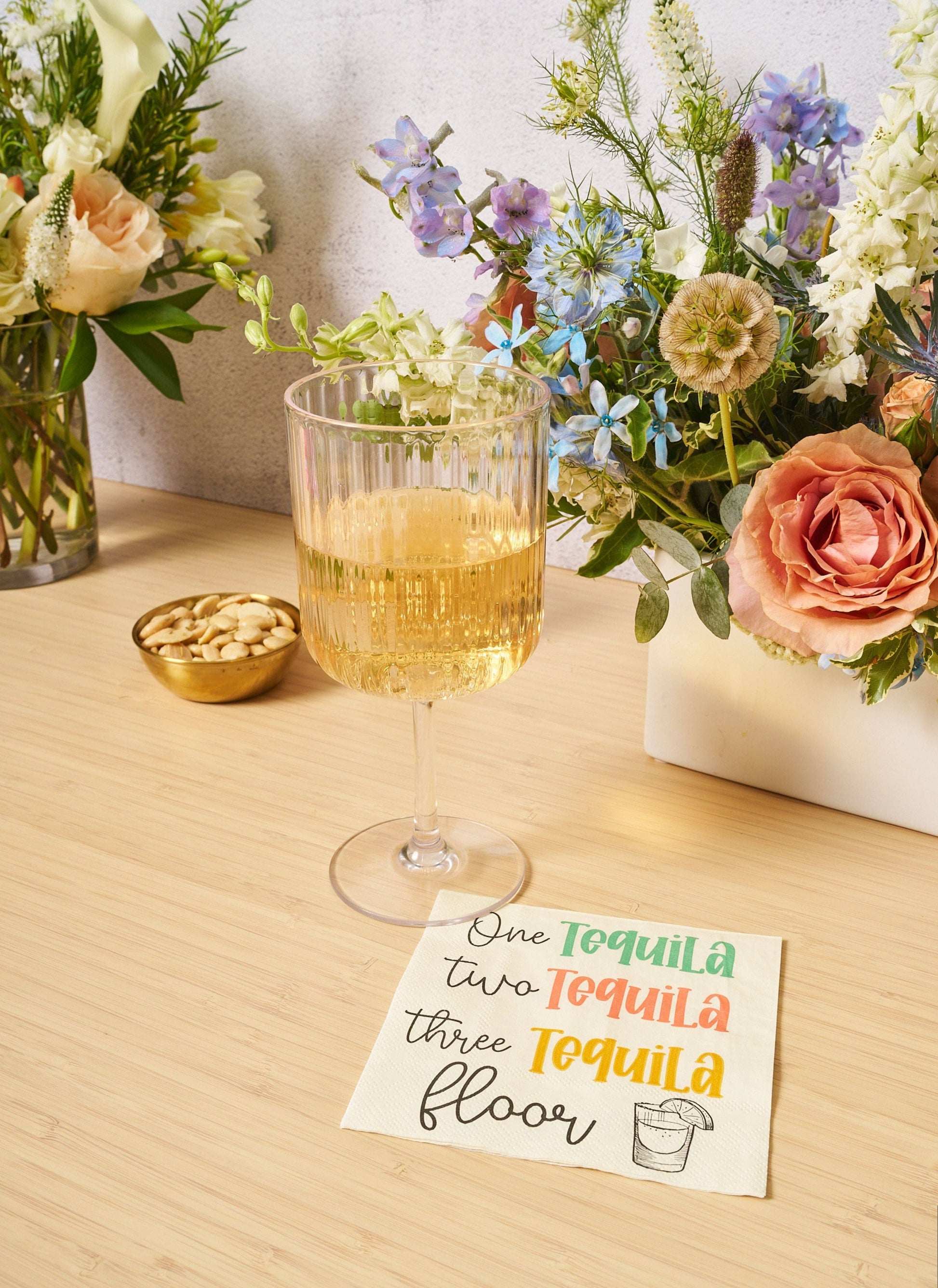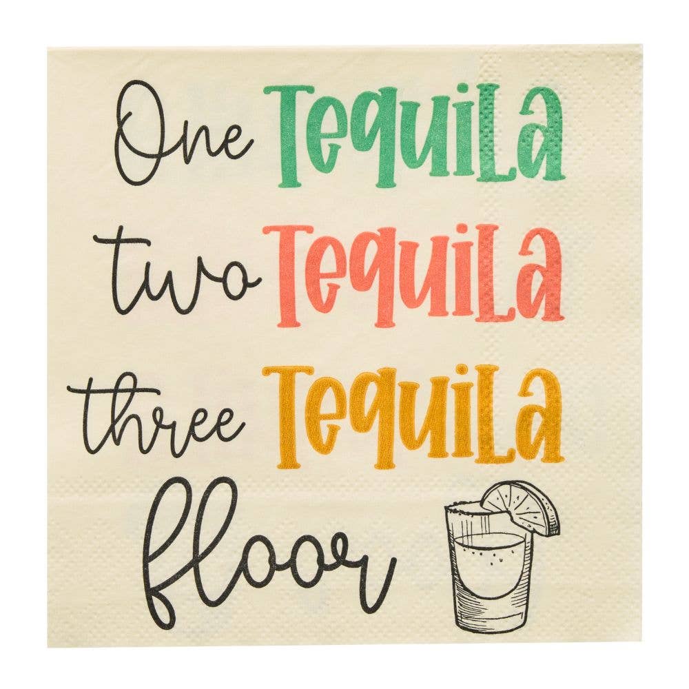 Take life one tequila at a time… or maybe three. With our cheeky 'One Tequila, Two Tequila, Three Tequila, Floor' cocktail napkins, you’ll be ready for wherever the night takes you. Whether used to hold appetizers or placed under your beverage at the dinner table, these napkins bring both practicality and elegance to your happy hour celebrations.