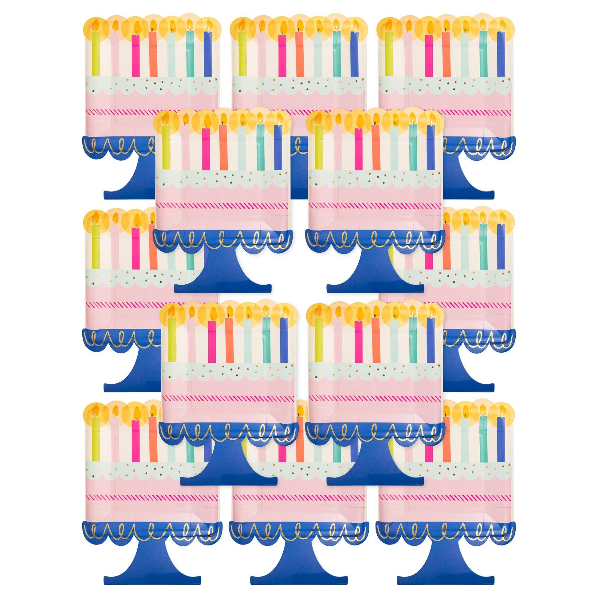 Make any birthday celebration even sweeter with our cake shaped paper plate! This unique plate is perfect for serving up delicious slices of cake or appetizers with a playful touch. Say goodbye to boring paper plates and hello to a fun and festive addition to your party supplies! • includes 12 paper plates • 9 x 12 inches • gold foil accents.