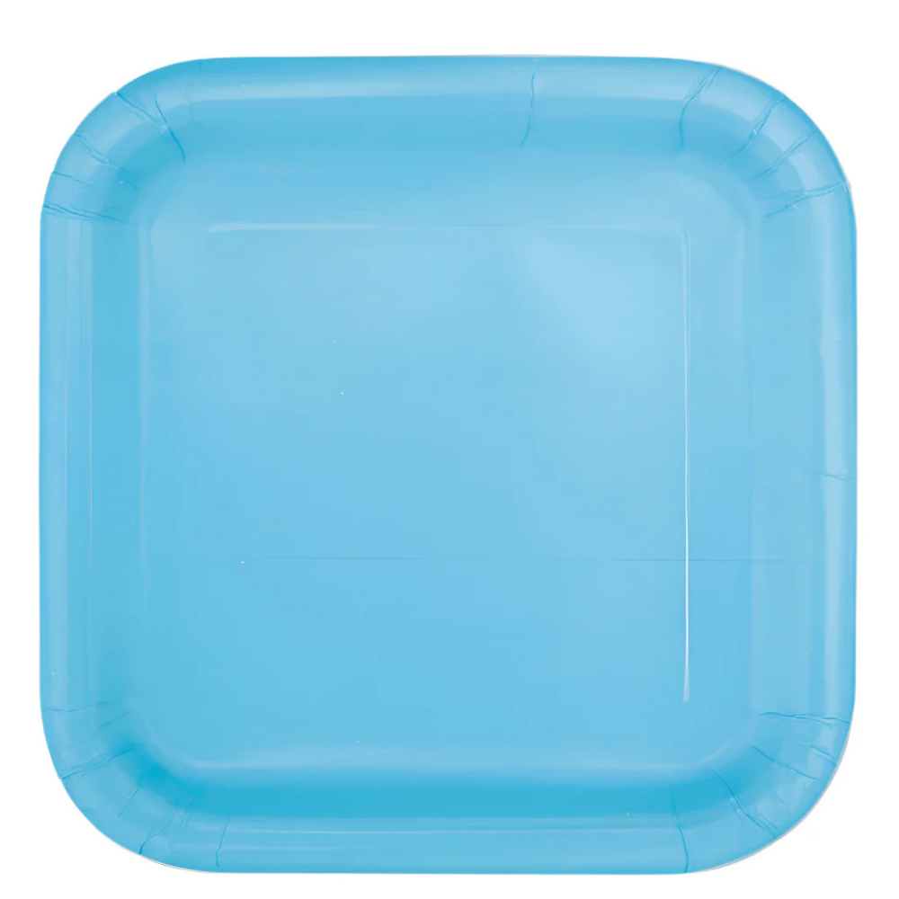 Light Blue Square 9in Dinner Plates 14ct
