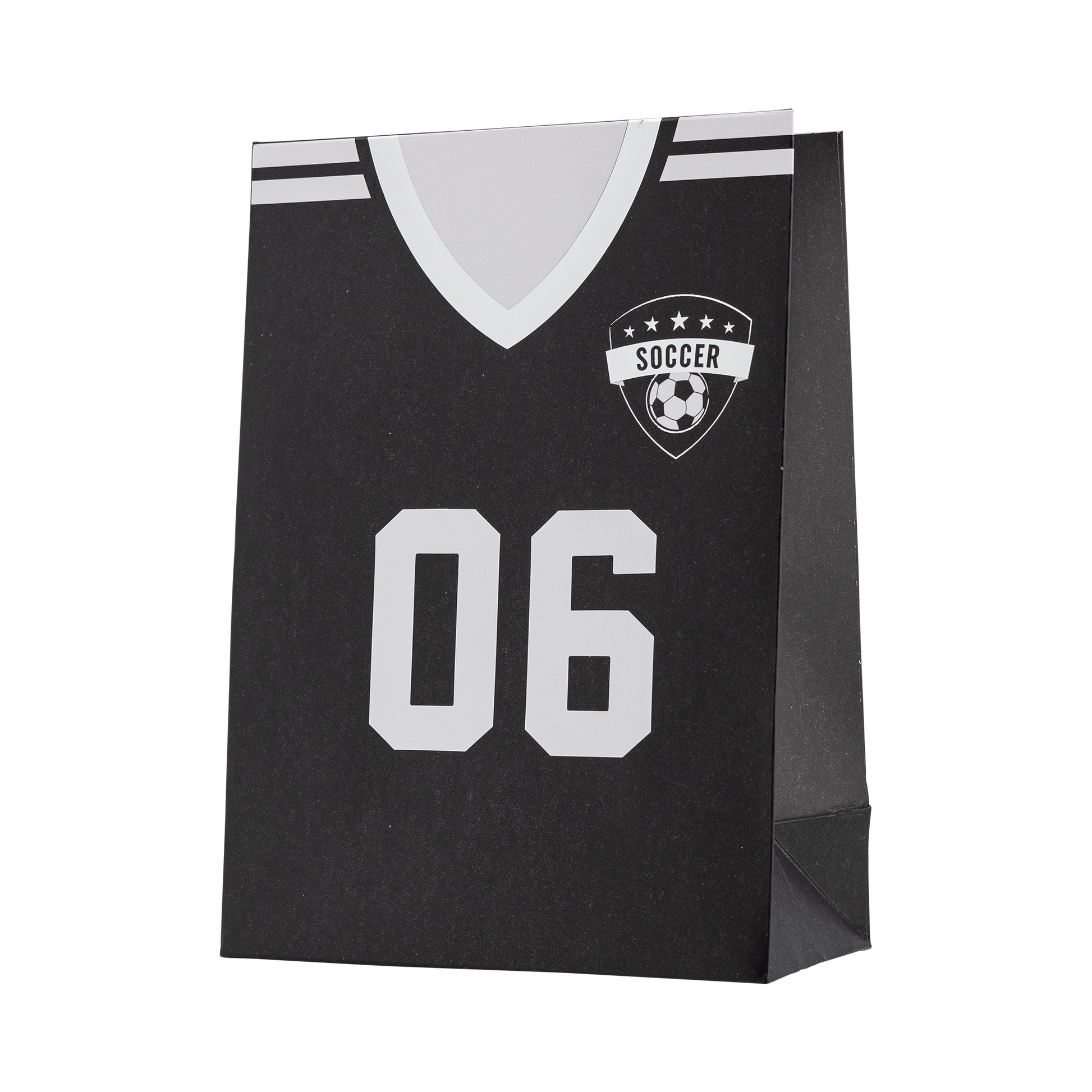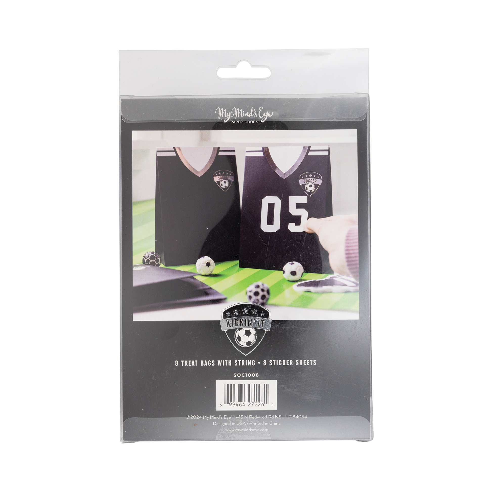 Score a goal with these treat bags! Stick on the included number stickers for a winning party favor. Perfect for any soccer-loving occasion. (Goooooooal!) • includes 8 treat bags • bags are 5" x 8" x 2.5" • includes number sticker sheets and twine • gold foil