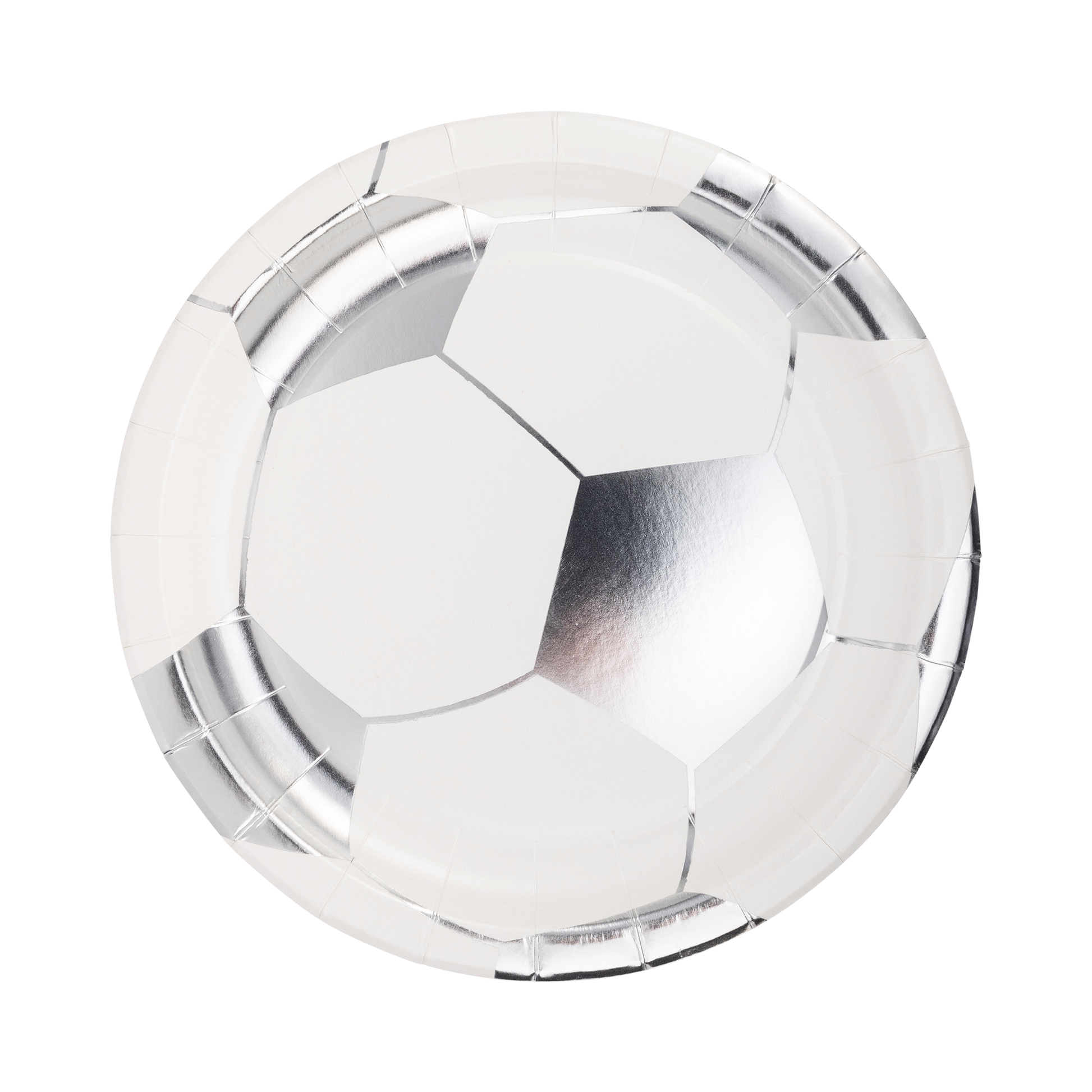 Get the party rolling with our Soccer Ball Plate! This unique plate features a playful soccer ball design, perfect for any soccer-themed party or event. With its durable material and fun design, it's sure to be a hit among soccer fans. Game on! • includes 8 paper plates • 8 inches • silver foil