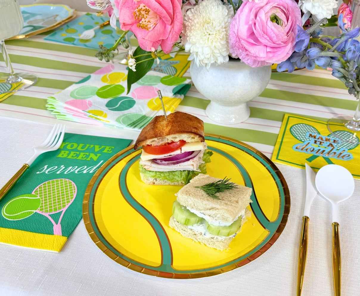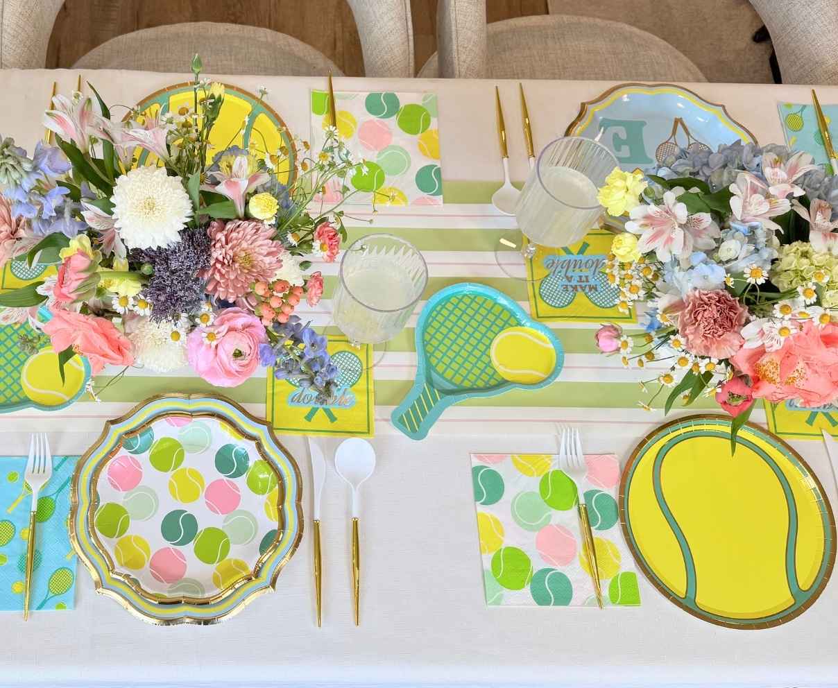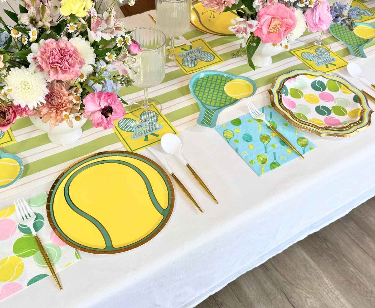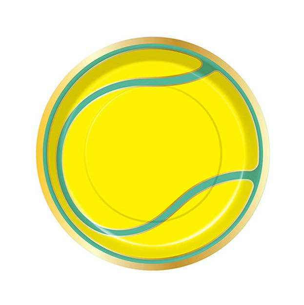 Designed in the shape of a classic tennis ball with vibrant detailing and complemented by a sleek metallic trim, these plates bring a fun yet sophisticated touch to your table. Both durable and disposable, they allow you to skip the dirty dishes without sacrificing quality and style. Your guests will never believe they’re disposable!